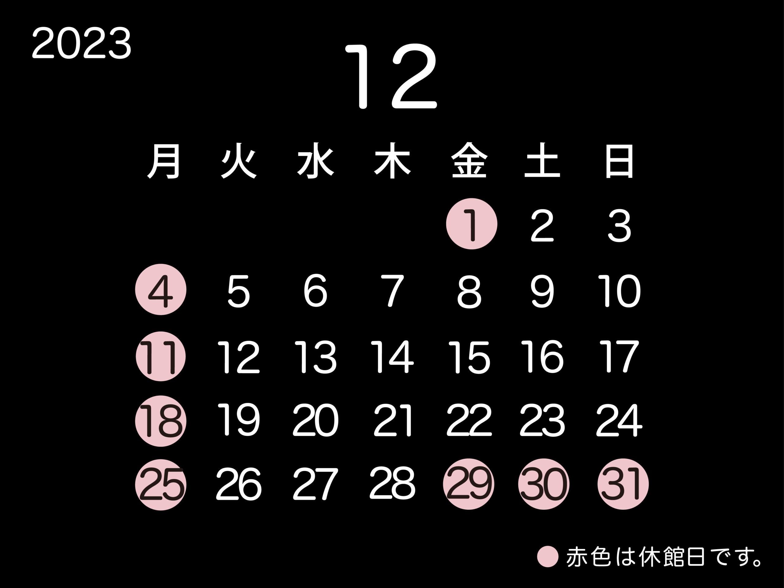 12月29日(金)~1月5日(金)までの期間は、年末年始のため休館いたします。